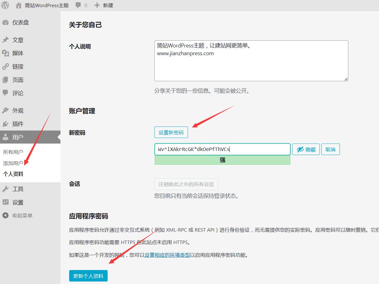 WordPress网站修改密码是非常简单的,看下面的图,按图操作就可以。