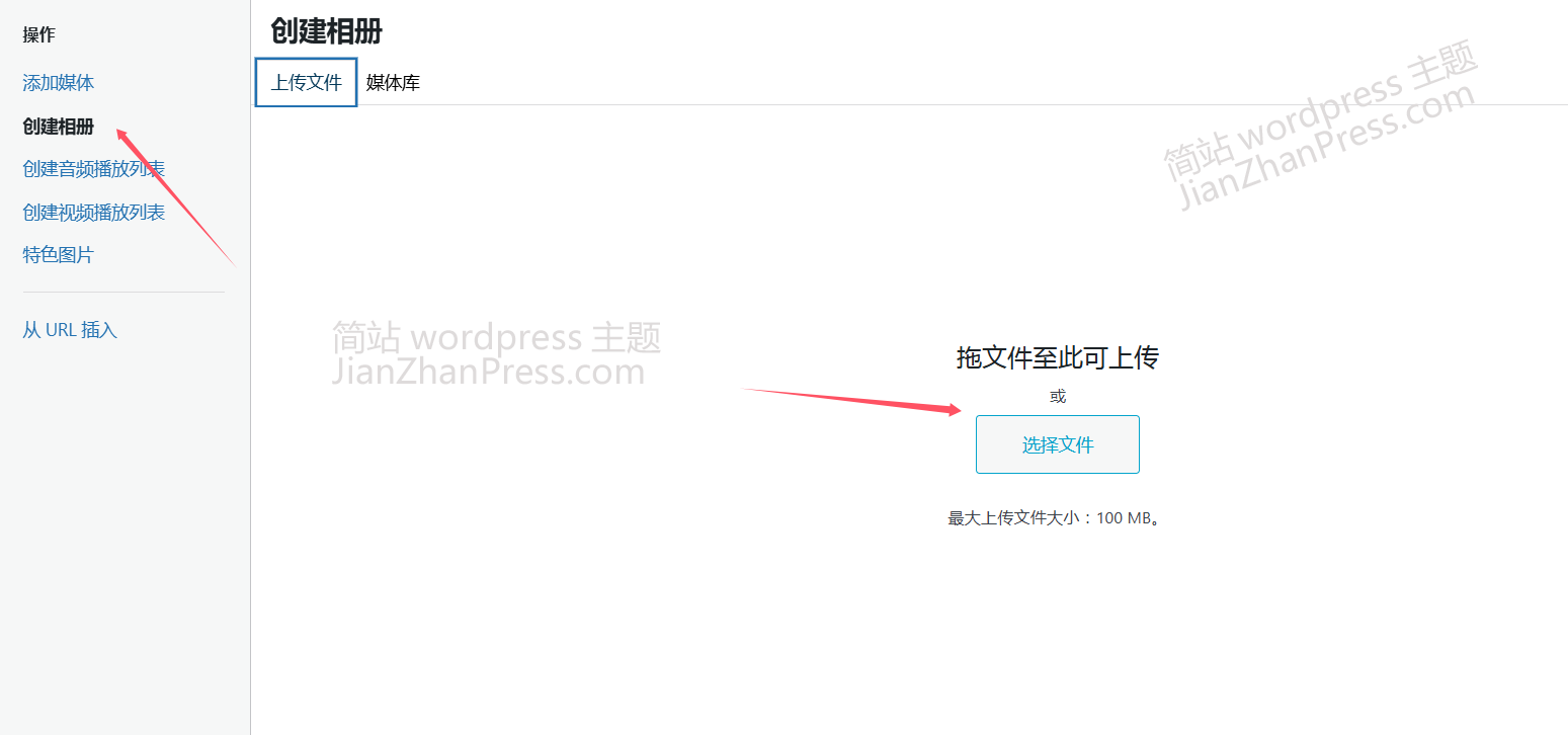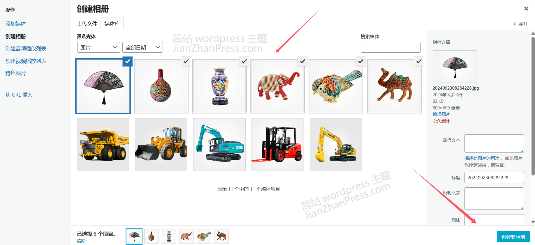 选择”创建相册“,选择需要轮播展示的多个产品图片,上传到这里。