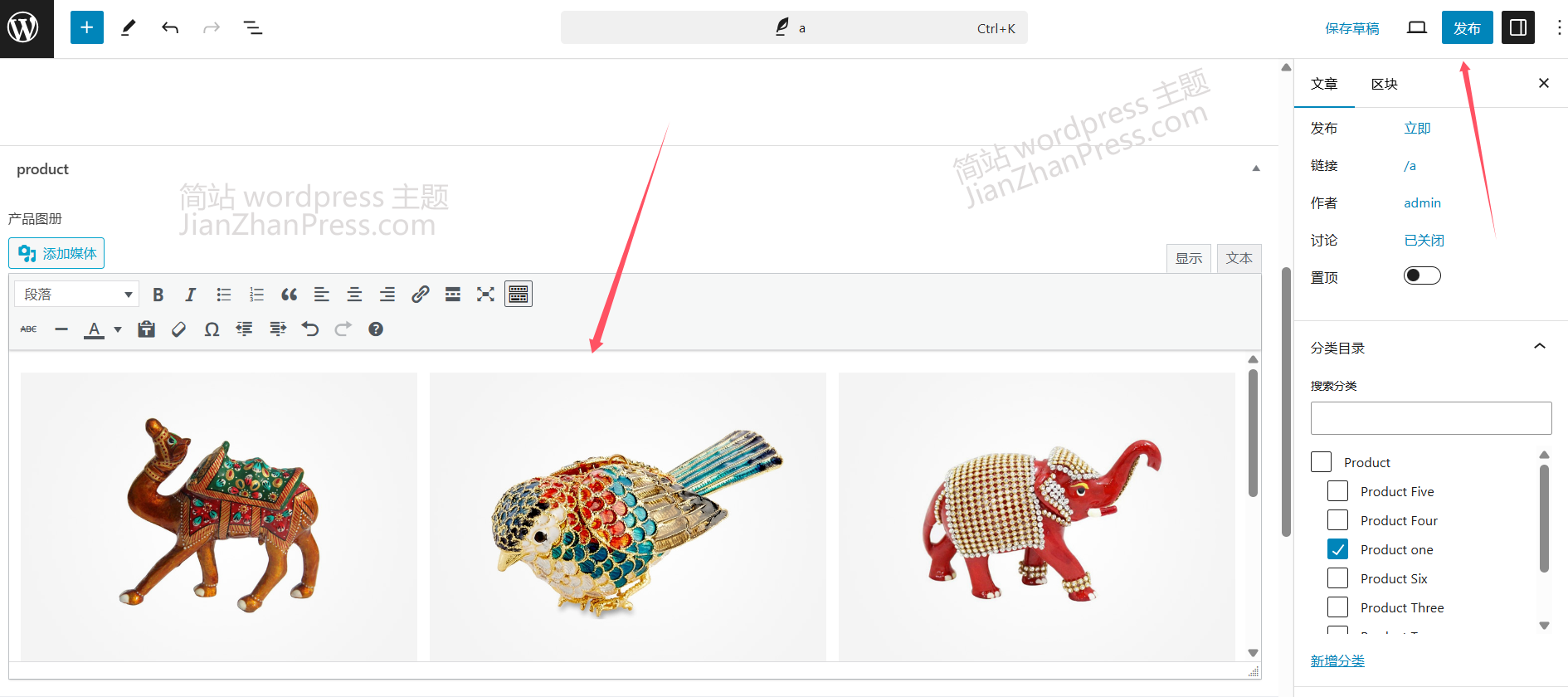 简站wordpress主题有多个产品图的主题,添加产品轮播图的具体方法如下: